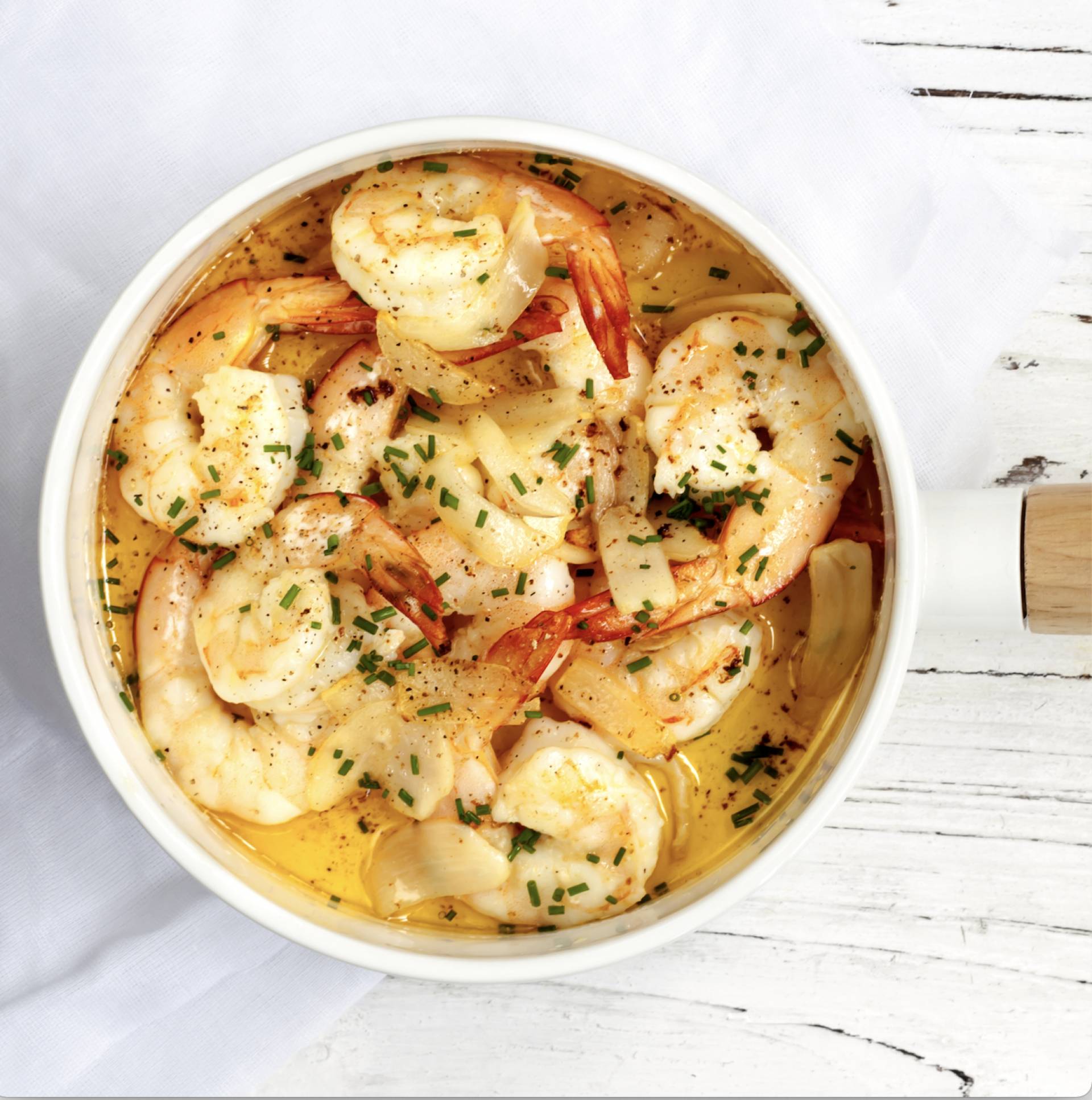 Garlic Lemon Shrimp Scampi, Served over Creamy Mashed Potatoes, Fresh Spinach, Broccoli